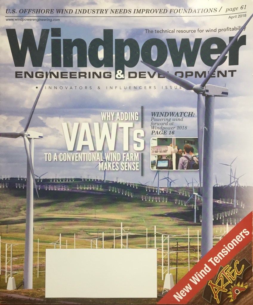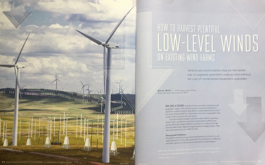 Vertical axis wind turbine concept and technical illustrations for Wind Harvest International